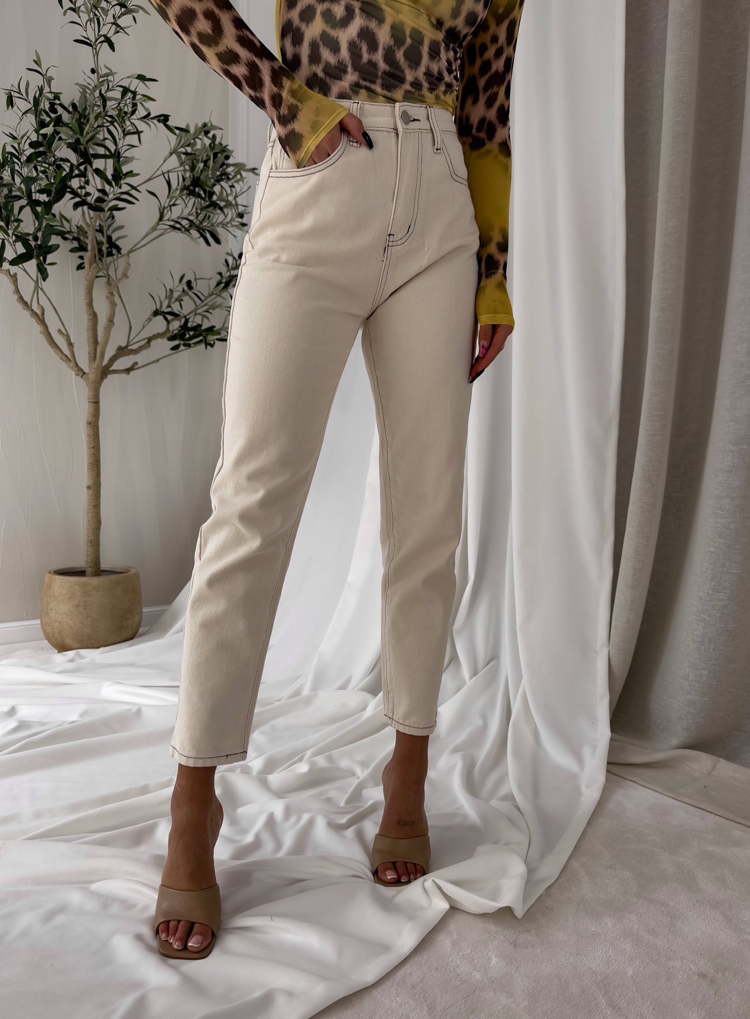 Jeansy Mom fit sprawdzą się do wielu stylizacji. Zapinane na guzik. Posiadają szlufki oraz kieszenie z przodu i z tyłu.