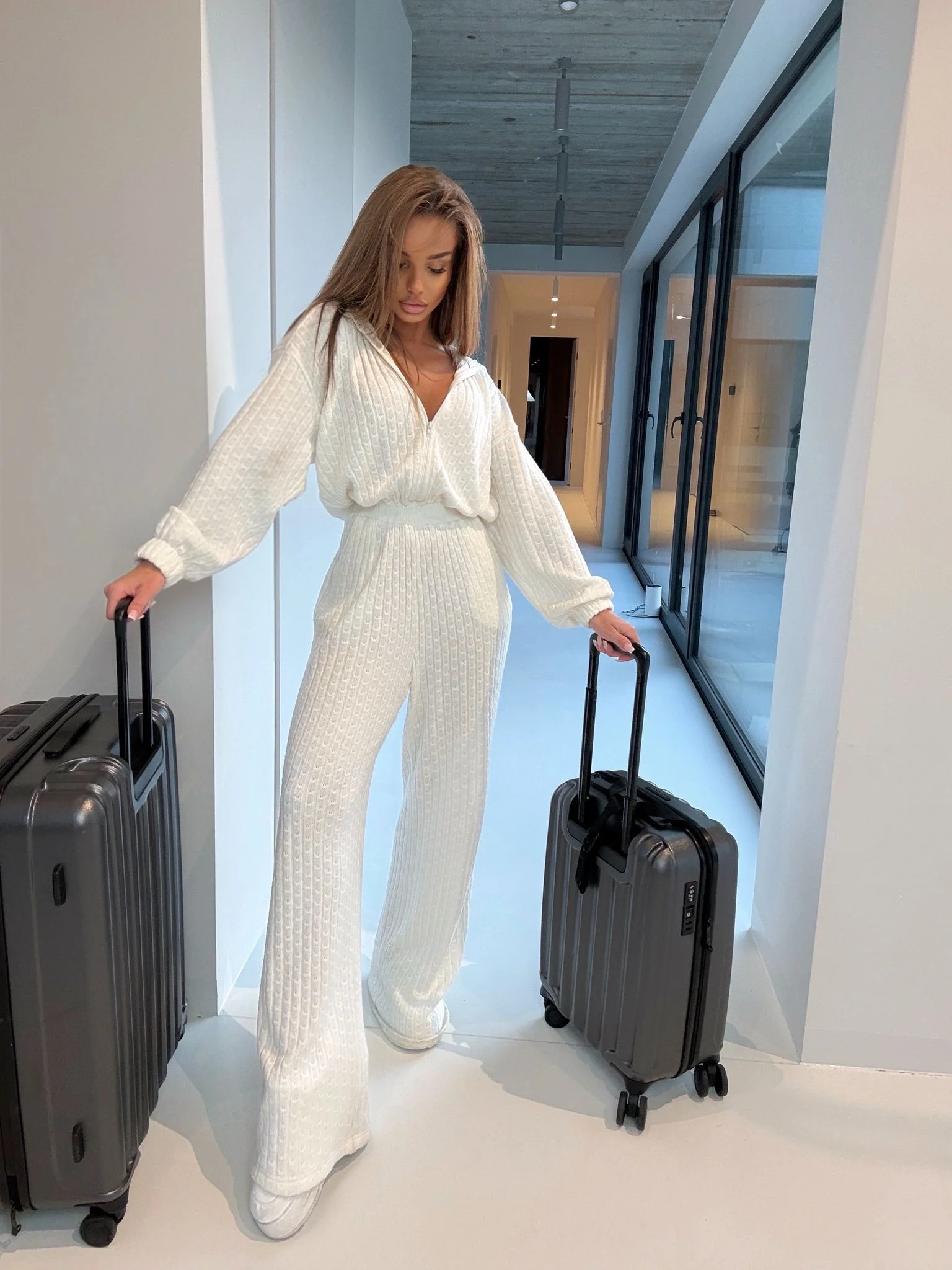 Stylowy kombinezon dresowy PREMIUM. Modny i niezwykle wygodny kombinezon, który łączy casualowy luz z kobiecą elegancją. Wykonany z wysokiej jakości, miękkiej dzianiny dresowej, idealnie sprawdzi się zarówno na co dzień, jak i w stylizacjach streetwearowych. Model zapinany na zamek, z elastyczną gumką w talii pięknie podkreśla sylwetkę. Luźny krój zapewnia maksymalny komfort noszenia. Kombinezon posiada długie rękawy oraz długie, proste nogawki. Świetnie wygląda solo, jak i w połączeniu z topem lub bielizną koronkową. Idealny do sneakersów, botków czy klapek – must have w każdej szafie.